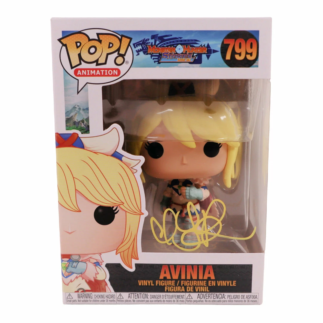 From the Monster Hunter Stories anime and comic series comes this Avinia Pop! Vinyl Figure! This is a limited edition variant of the figure that has been signed by voice actress Tia Ballard in yellow ink and has been JSA Authenticated. Limited edition.
