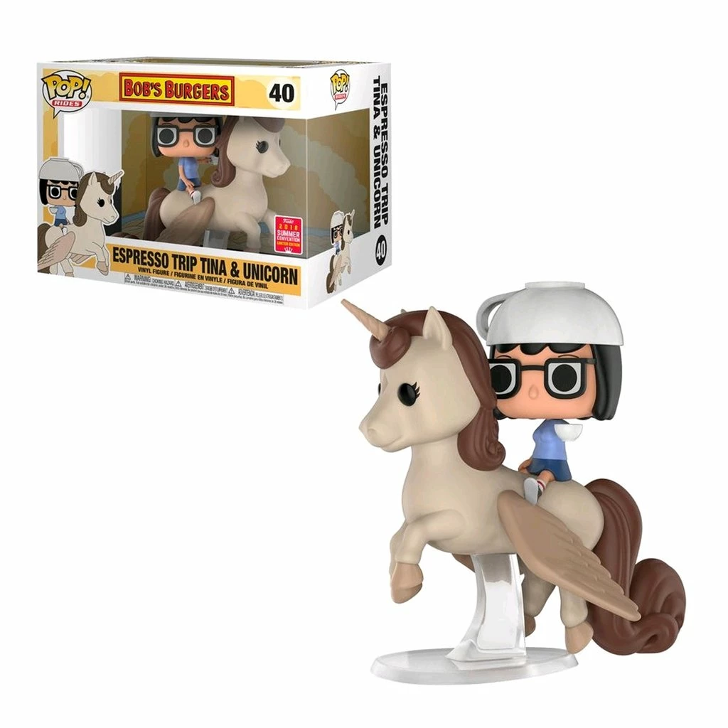 From the Bob’s BurgersΒ TV Cartoon series comes this Espresso Trip TinaΒ riding a unicornΒ Pop!Β ride FigureΒ from Funko!Β This is a San Diego Comic Con shared exclusive, limited-edition release figure.Β