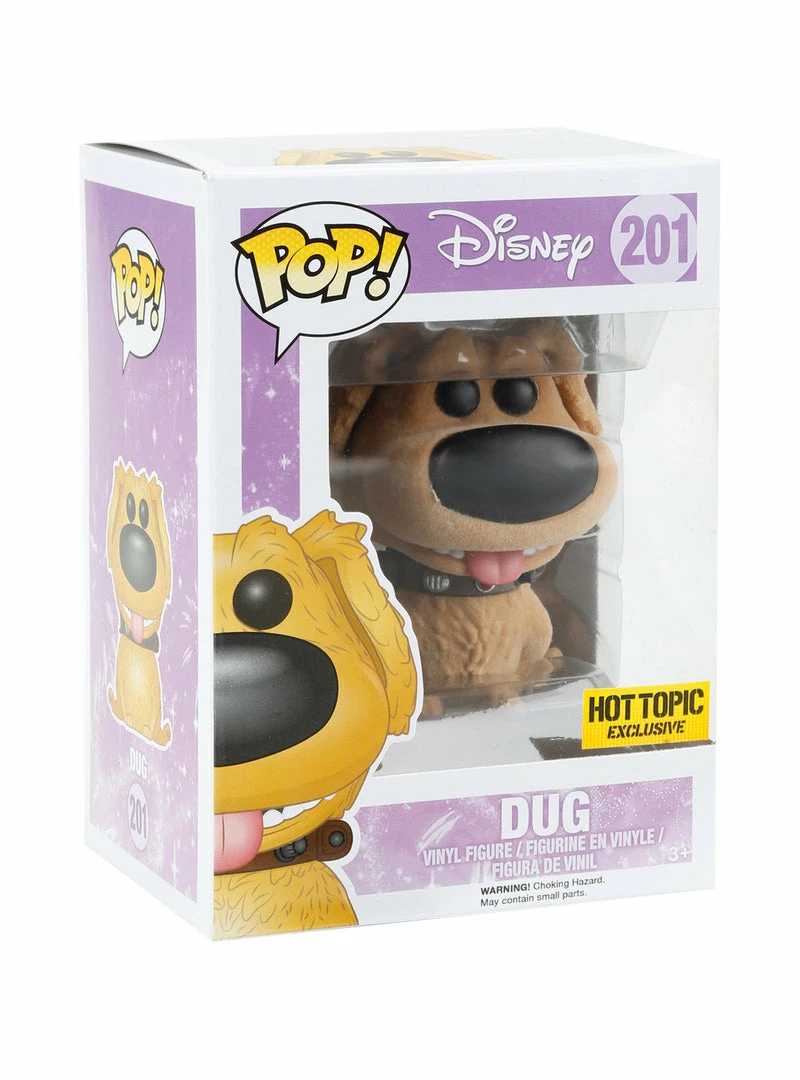 From the DisneyΒ UP!Β movie comes this flocked Dug Pop! Vinyl Figure! This is an exclusive, limited edition figure. A flocked figure has a coating on it that feels like fur.