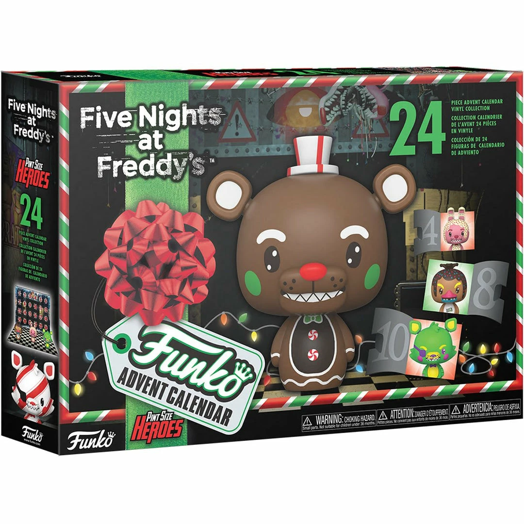 Reveal pocket Pop! Five Nights At Freddy’s characters that glow in Black Light hidden behind each door with this Advent Calendar. Each Pocket Pop!Β PokΓ©mon figure stands approximately 1 Β½ inches tall. 24 figures in total.