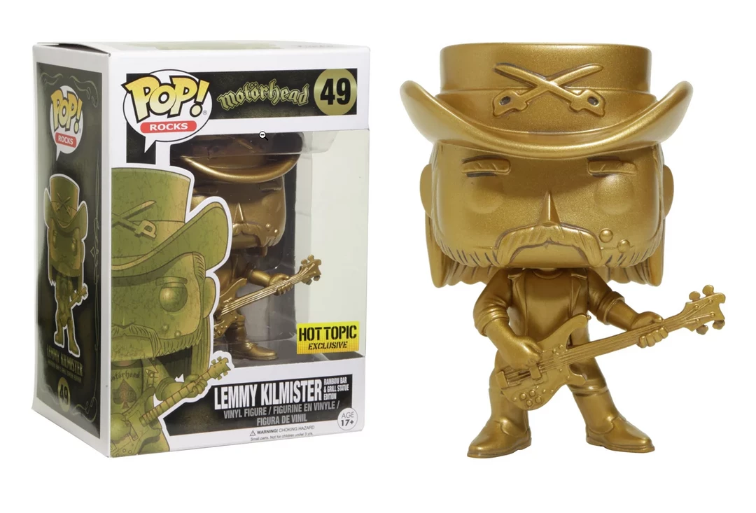 From the world of music and the band MotorheadΒ comes this gold Lemmy Kilmister (Rainbow Bar and Grill Statue Edition) Pop! Vinyl Figure from Funko!Β Β This is a limited edition exclusive figure.