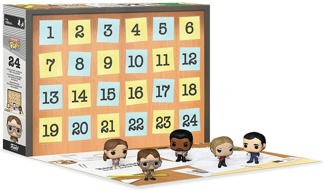 Reveal pocket Pop!Β The Office characters hidden behind each door with this Advent Calendar. Thereβs Jim, Dwight, Michael, and many more to discover! Each Pocket Pop!Β The Office figure stands approximately 1 Β½ inches tall.