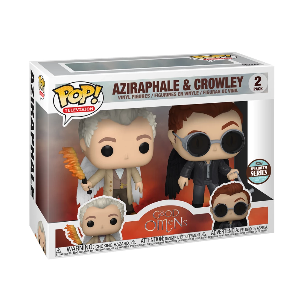 From the Good Omens Amazon Prime television series comes this Aziraphale and Crowley with wings 2-pack Pop! Vinyl Figures from Funko! This is a limited edition Specialty Series set of the figures designed exclusively for small collectible shops.
