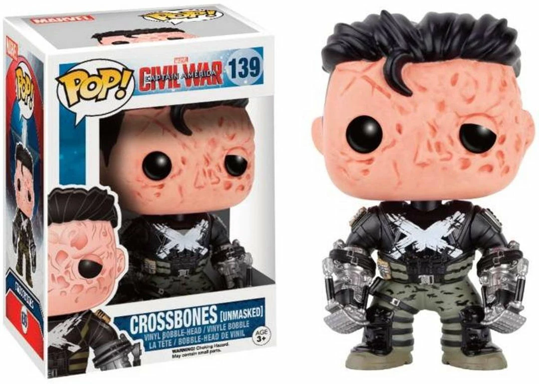 From the Captain America 3: Civil WarΒ movie comes this Unmasked CrossbonesΒ Pop! Vinyl Figure from Funko! This is a limited edition exclusive figure.Β Please note: Our version does have the exclusive sticker.Β