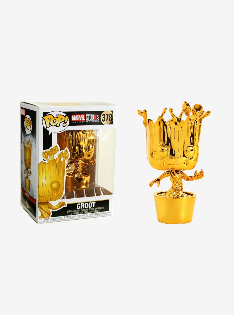 From the Marvel Studios First 10 Yearsย of movies comes this gold chrome Groot Pop! Vinyl Figure!ย