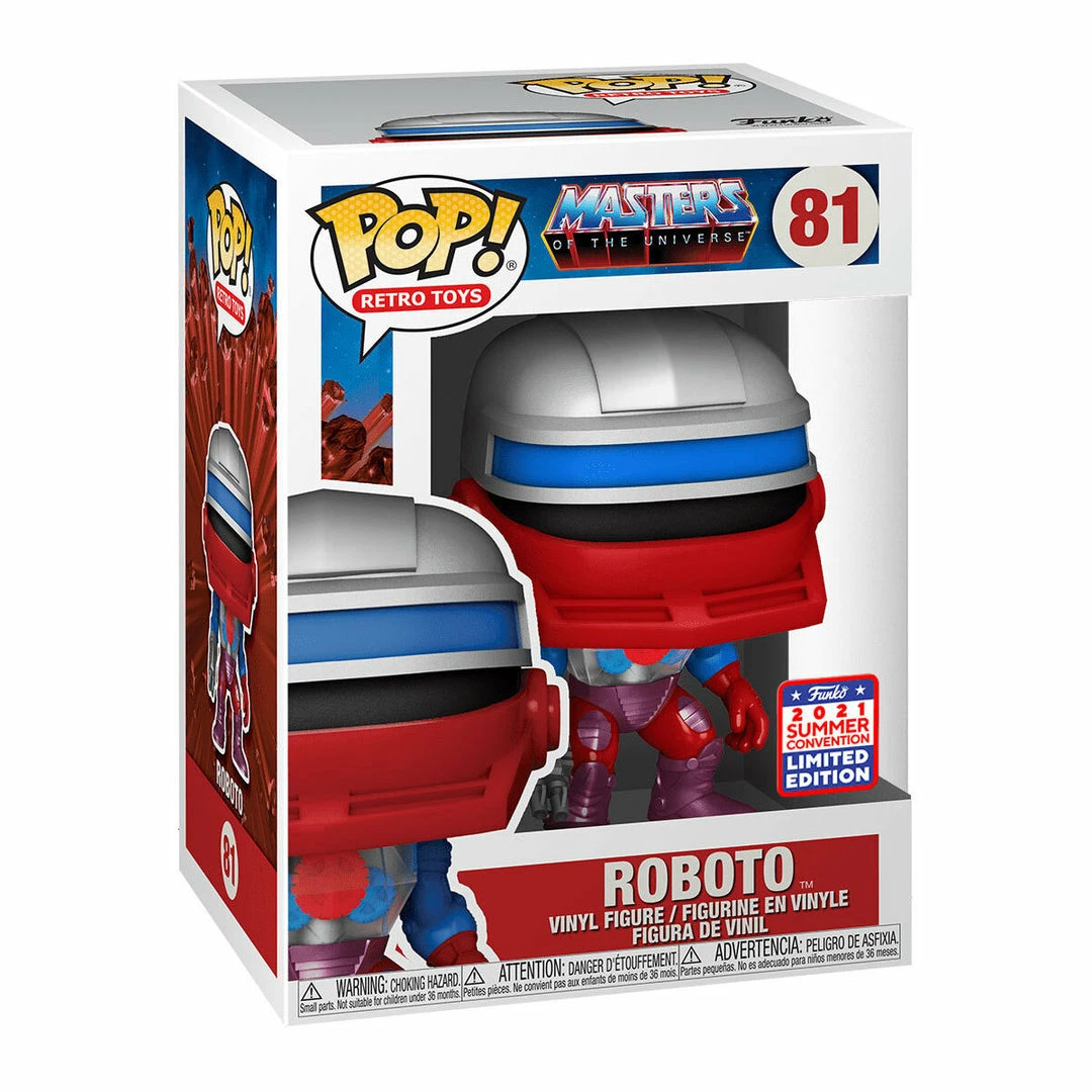 From the Masters of The Universe comes this Roboto Pop! Vinyl Figure from Funko!Β Β This is a limited edition shared San Diego Comic Con/Funkon exclusive figure.