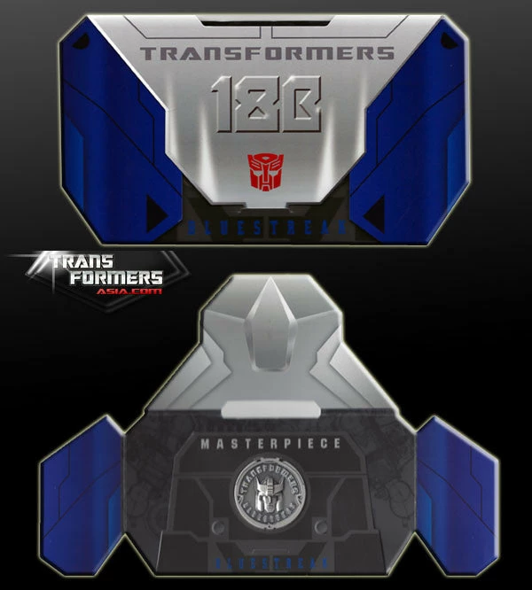Enter Masterpiece Bluestreak! One of the most highly anticipated Masterpiece figures to date, figure includes his shoulder mounted cannonΒ stubs, rifle and minty fresh silver and blue Datsun/Fairlady Z car alt mode we all know and love! Shoulder missiles are included in this kit, as is the Hasbro Transformers Asia Collector’s Coin.
